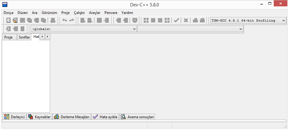 Dev C++ IDE ‘ yi çalıştırmanız halinde önünüze gelecek ekran görüntüsü resimdeki gibi olmalıdır.,