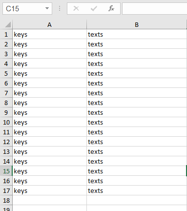 Before importing the Excel file, it is necessary to know the columns of the excel file. I have key and text columns. Keys’re associated with the sap document. Columns of texts are the texts that I will update or upload.